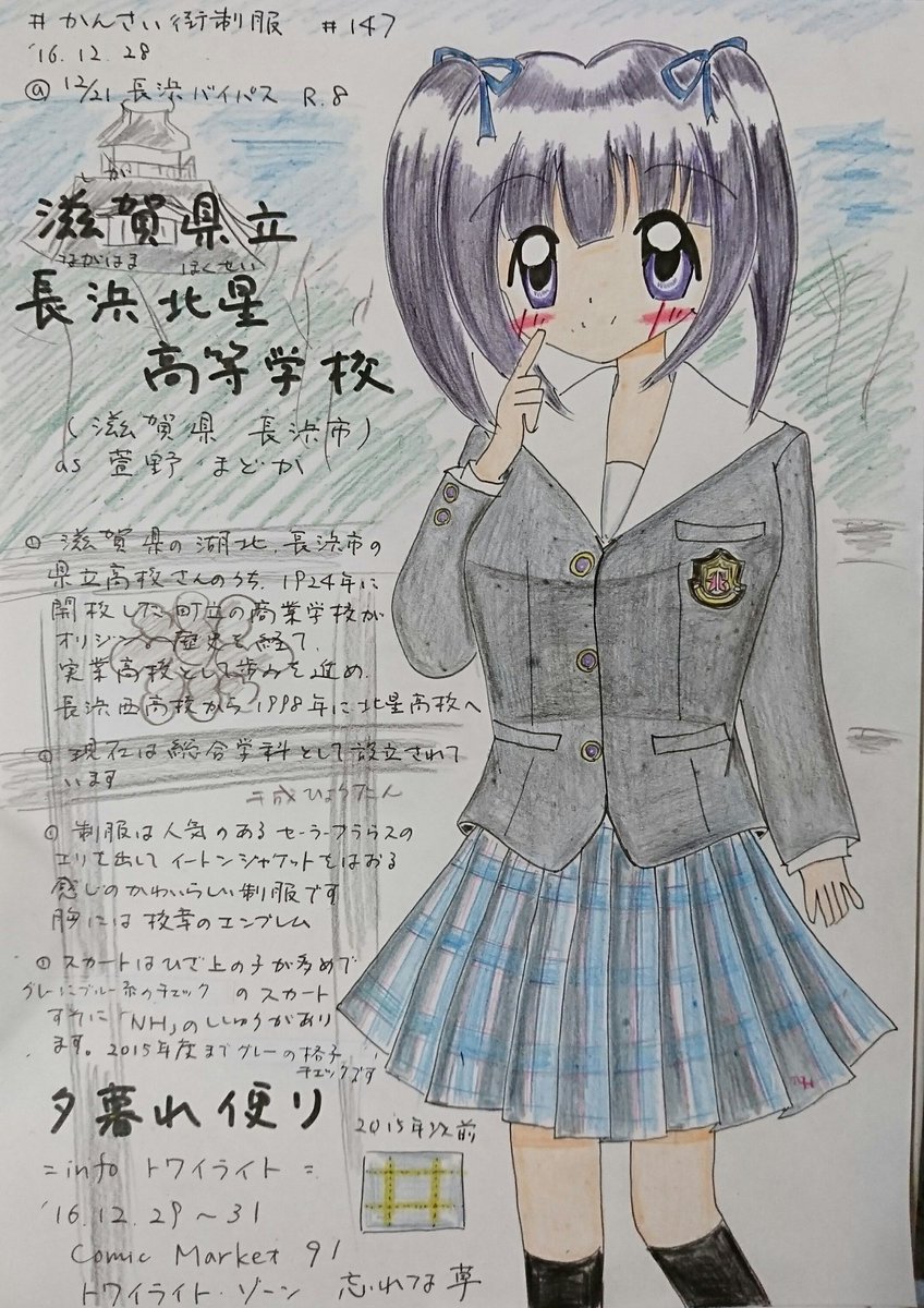 忘れな草 トワイライト ゾーン 39 468 かんさい街制服 その147 滋賀県立長浜北星高校さん 1924年に長浜 町立の商業高校として開校の総合学科の湖北の高校さん セーラーブラウスにイートンブレザーがステキ スカートは16年度より青系チェックに